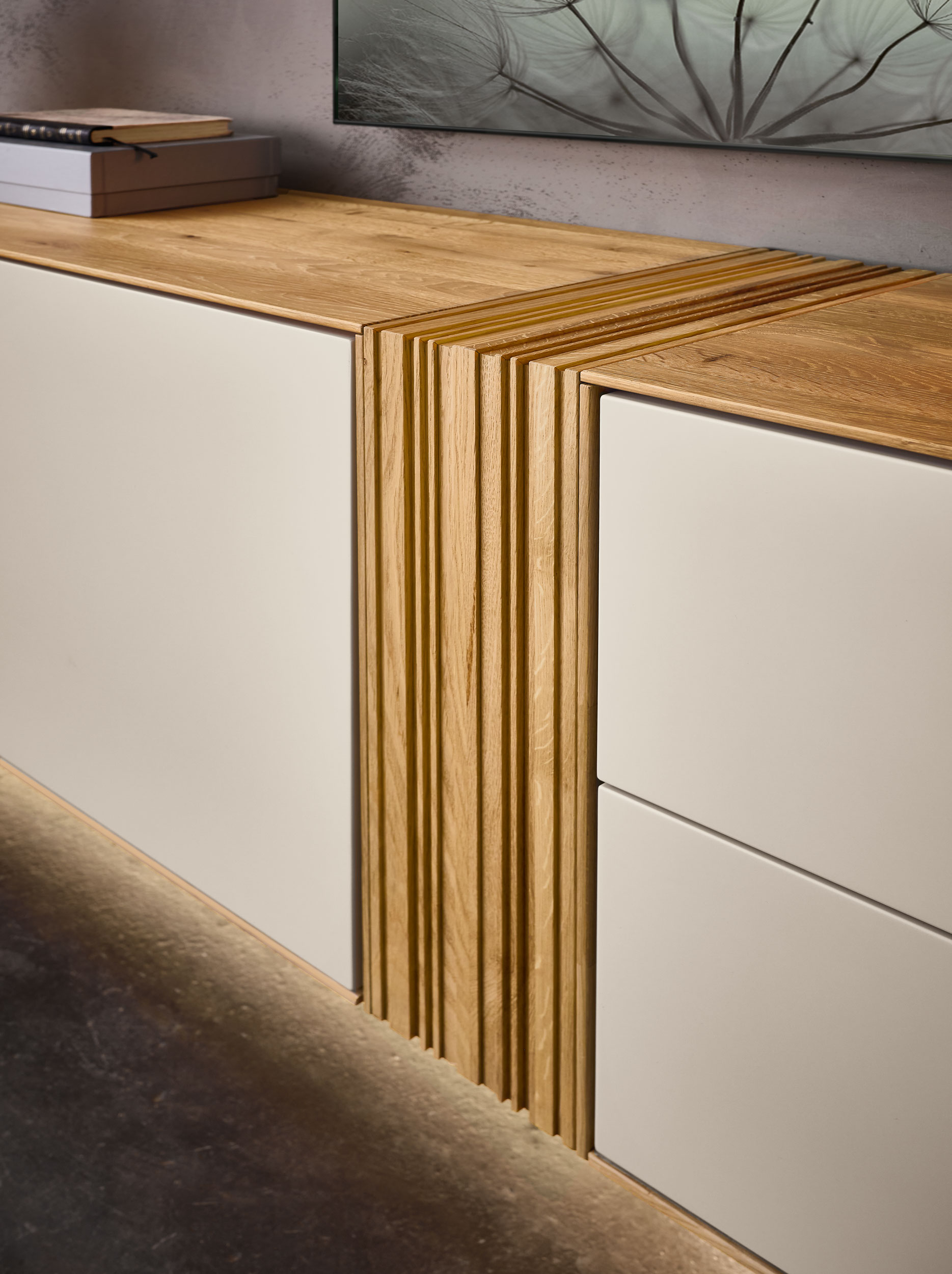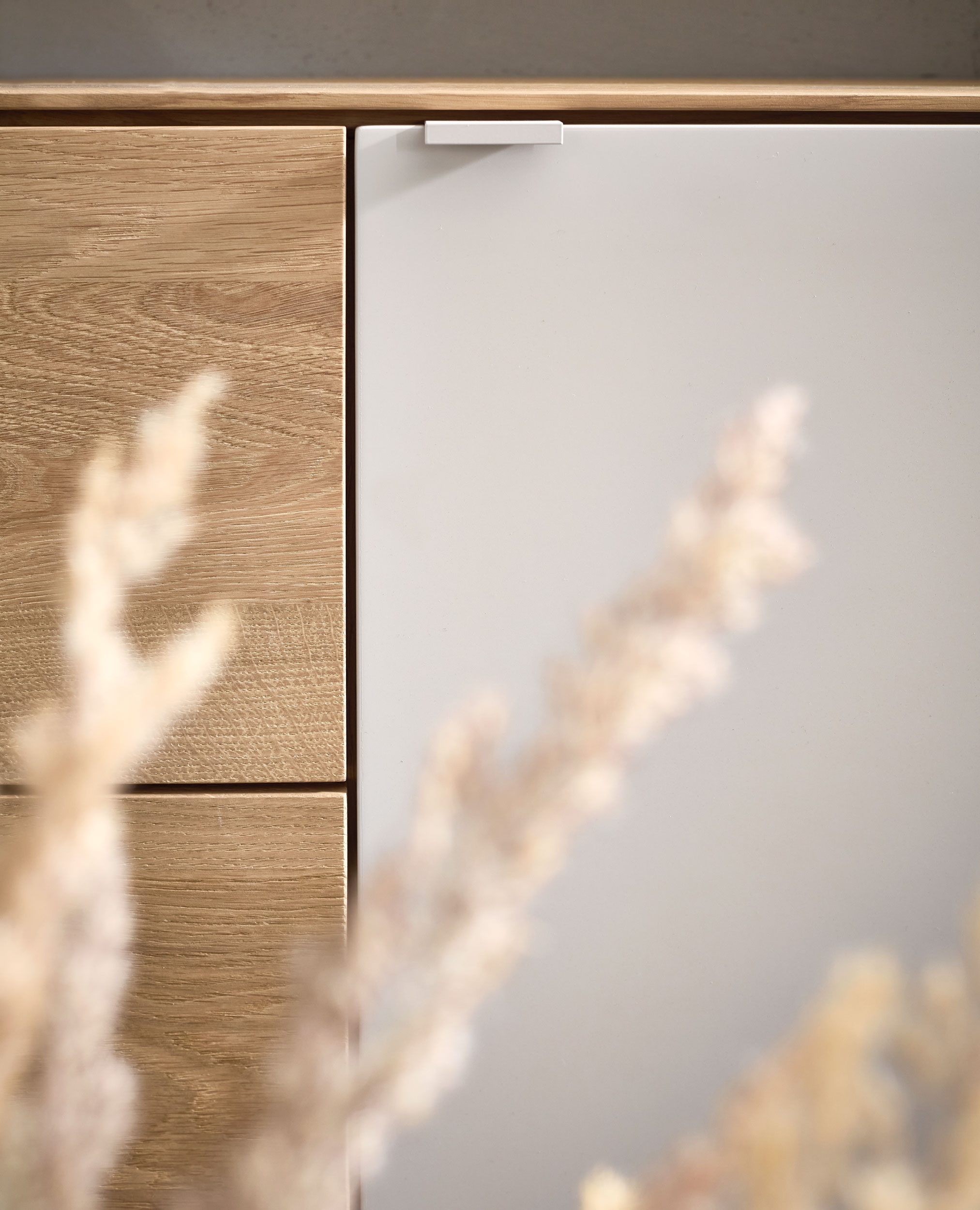 Korpus und Wandborde: Wildeiche massiv, soft gebürstet
