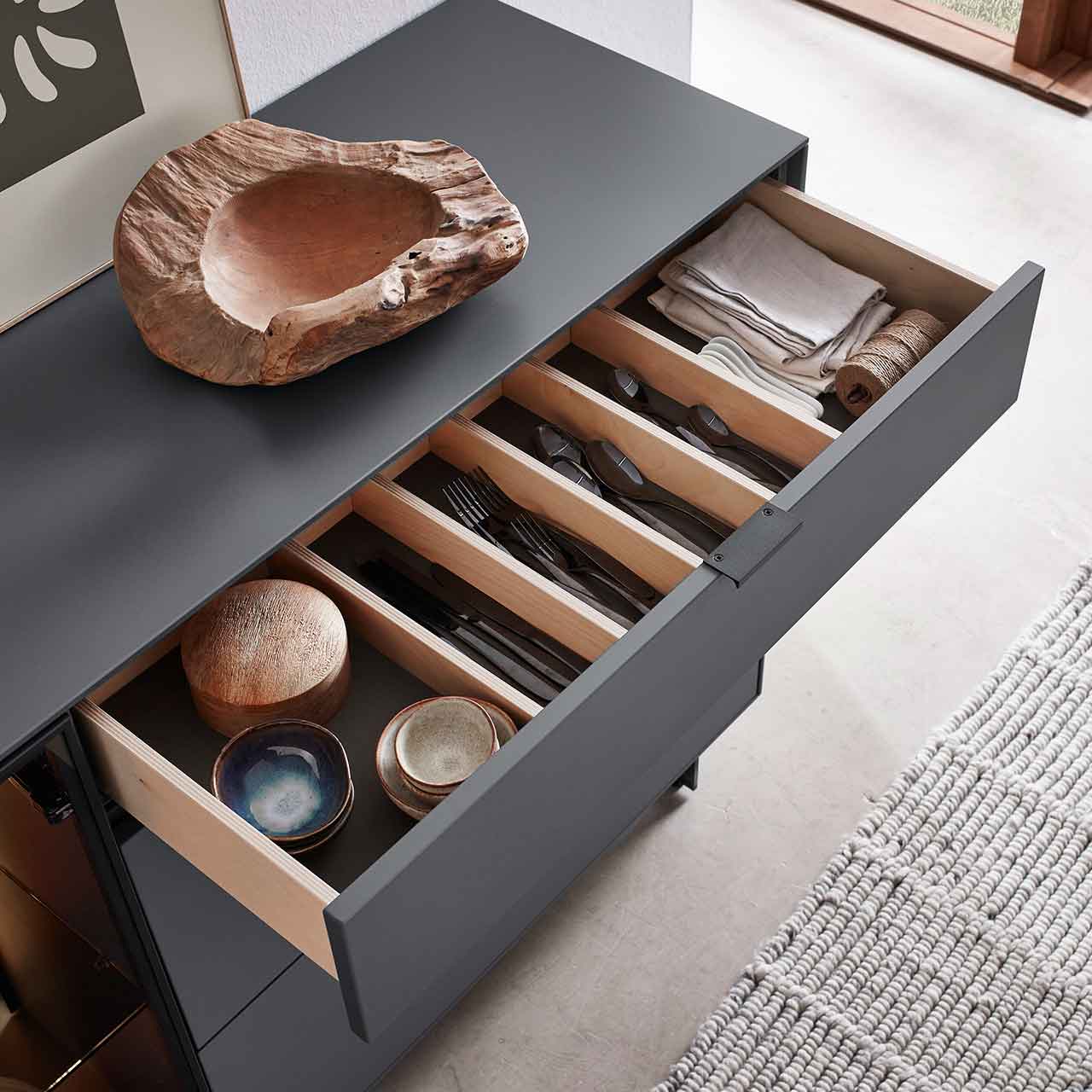 - Korpus & Fronten: Lack graphitgrau, Lack weiß