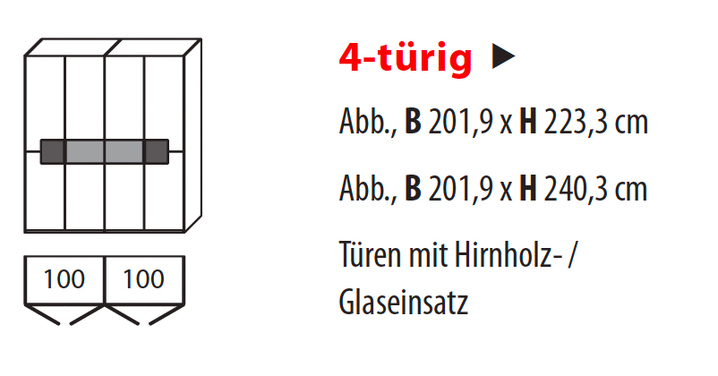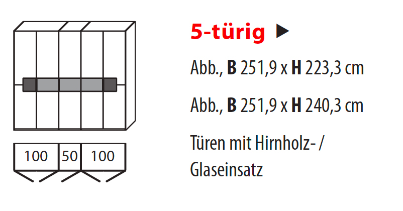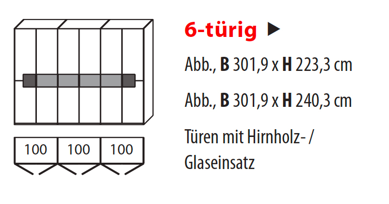- Gesamtbreite in cm: 4-türig 201,9 / 5-türig 251,9 / 6-türig 301,9