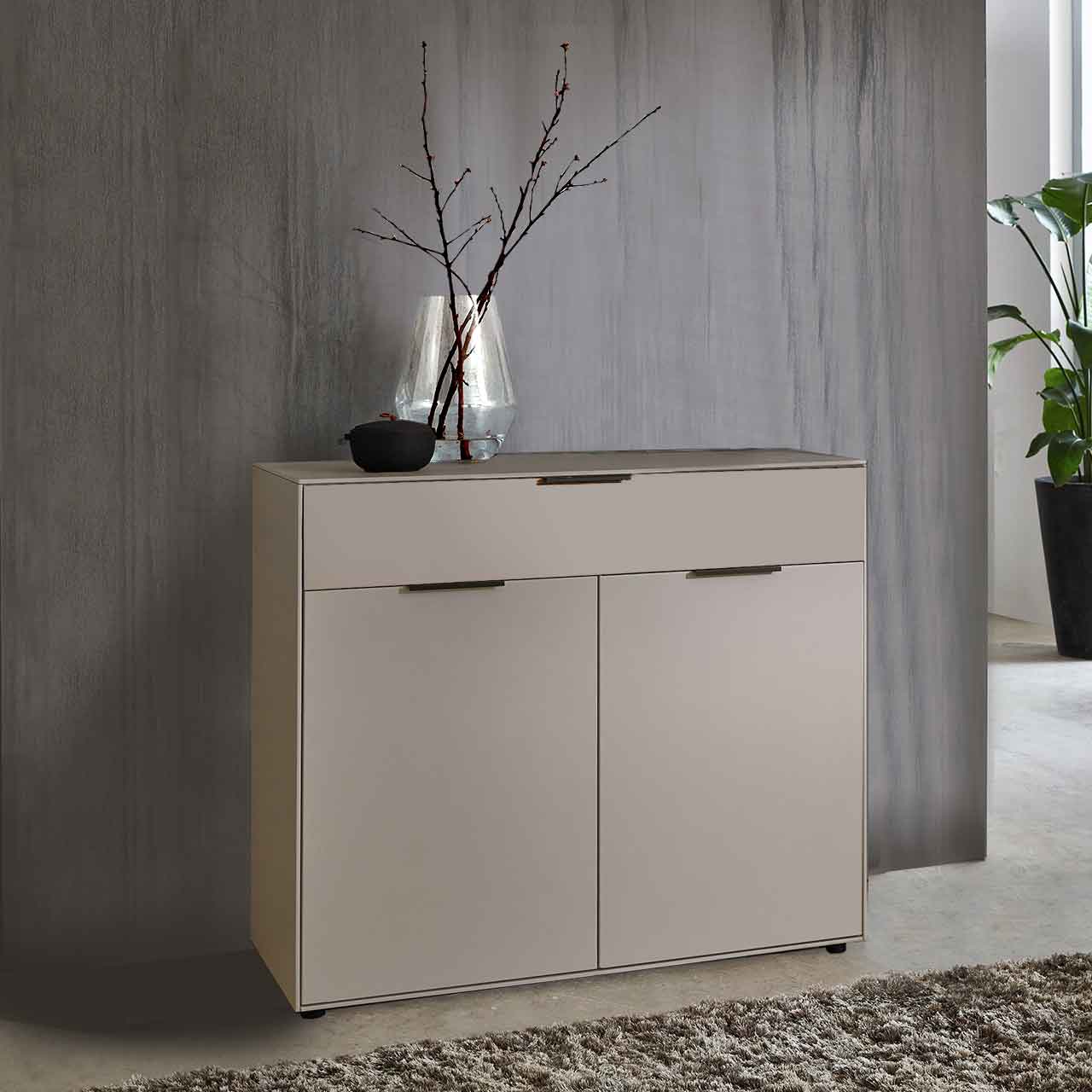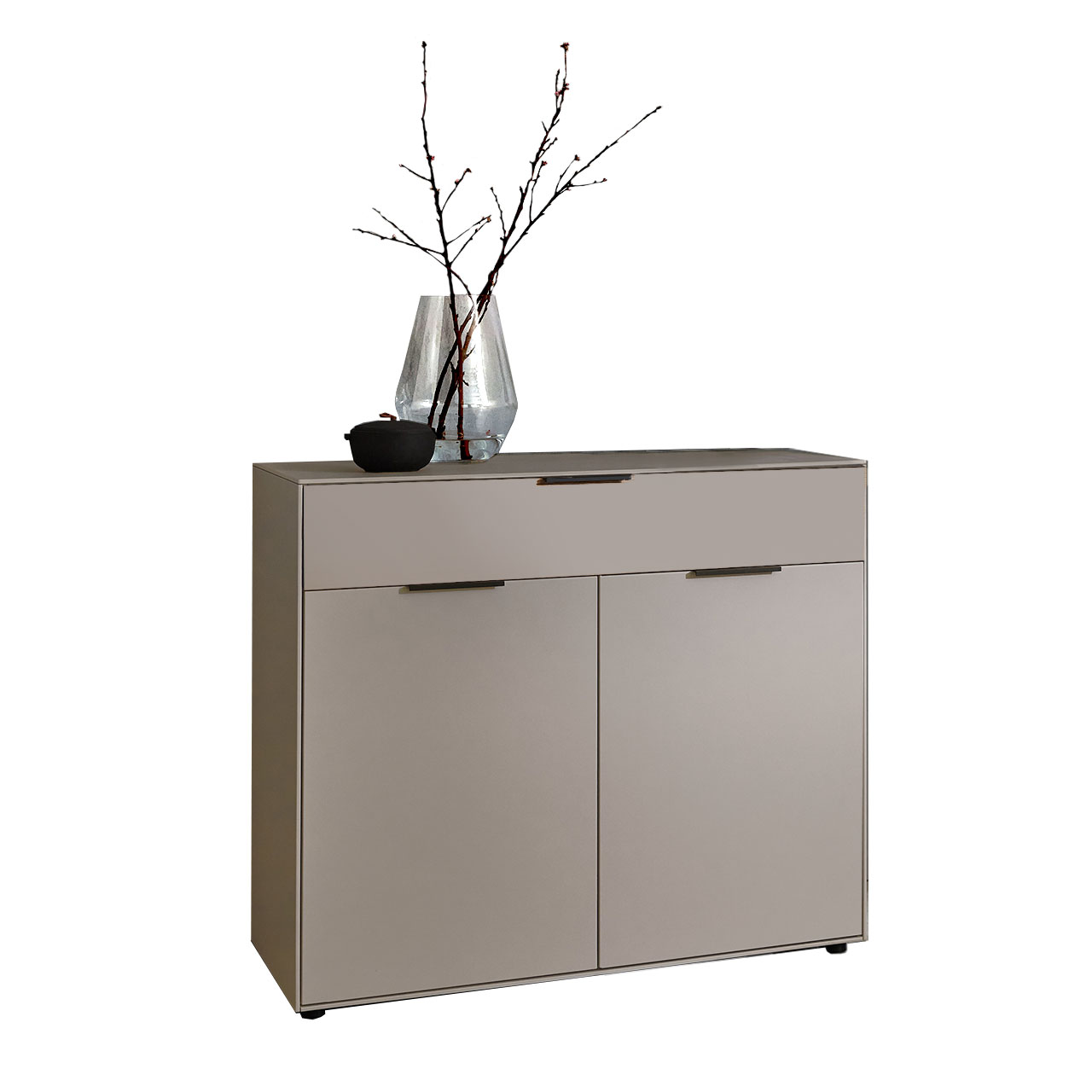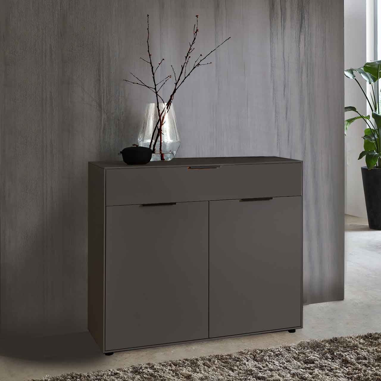 •  Korpus außen & Front: Korpus 19 mm dick, ABS Kante, Lack graphitgrau / Lack samtgrau