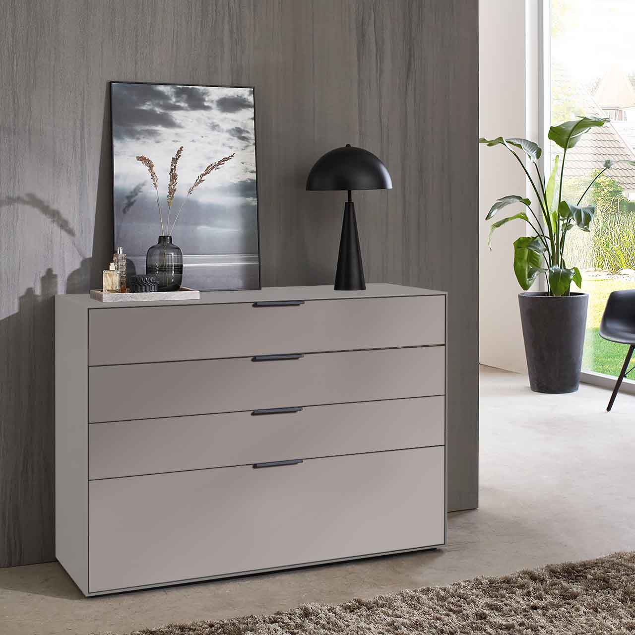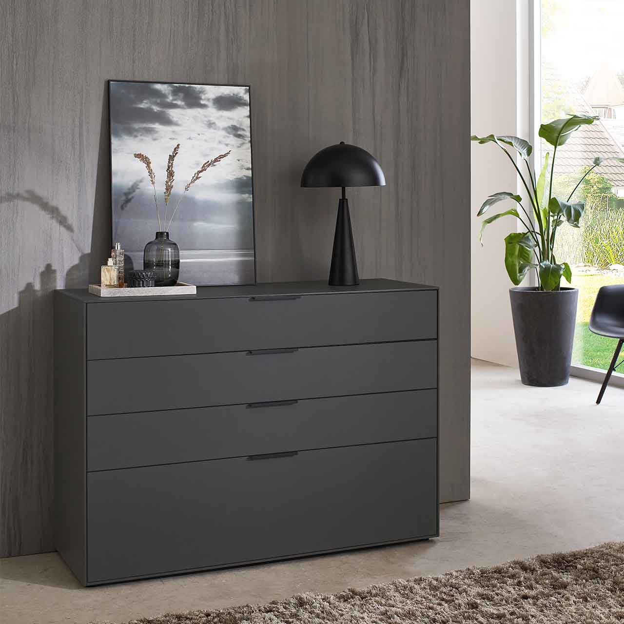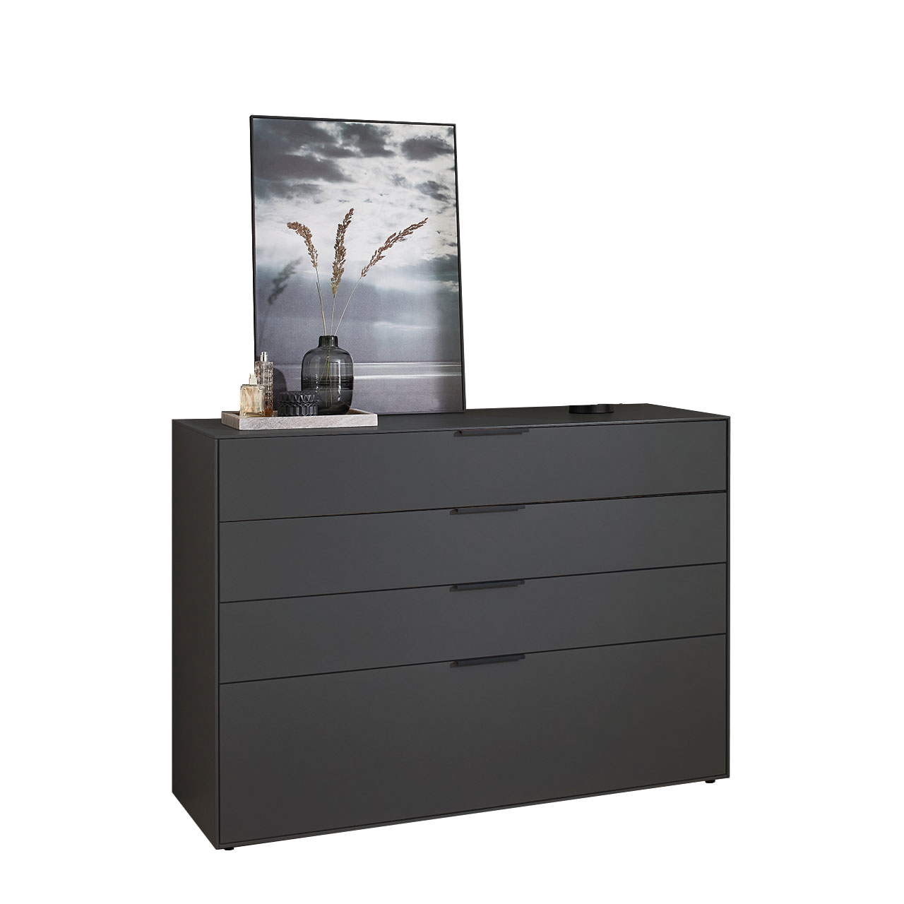 • Korpus außen & Front: Korpus 19 mm dick, ABS Kante, Lack graphitgrau / Lack samtgrau