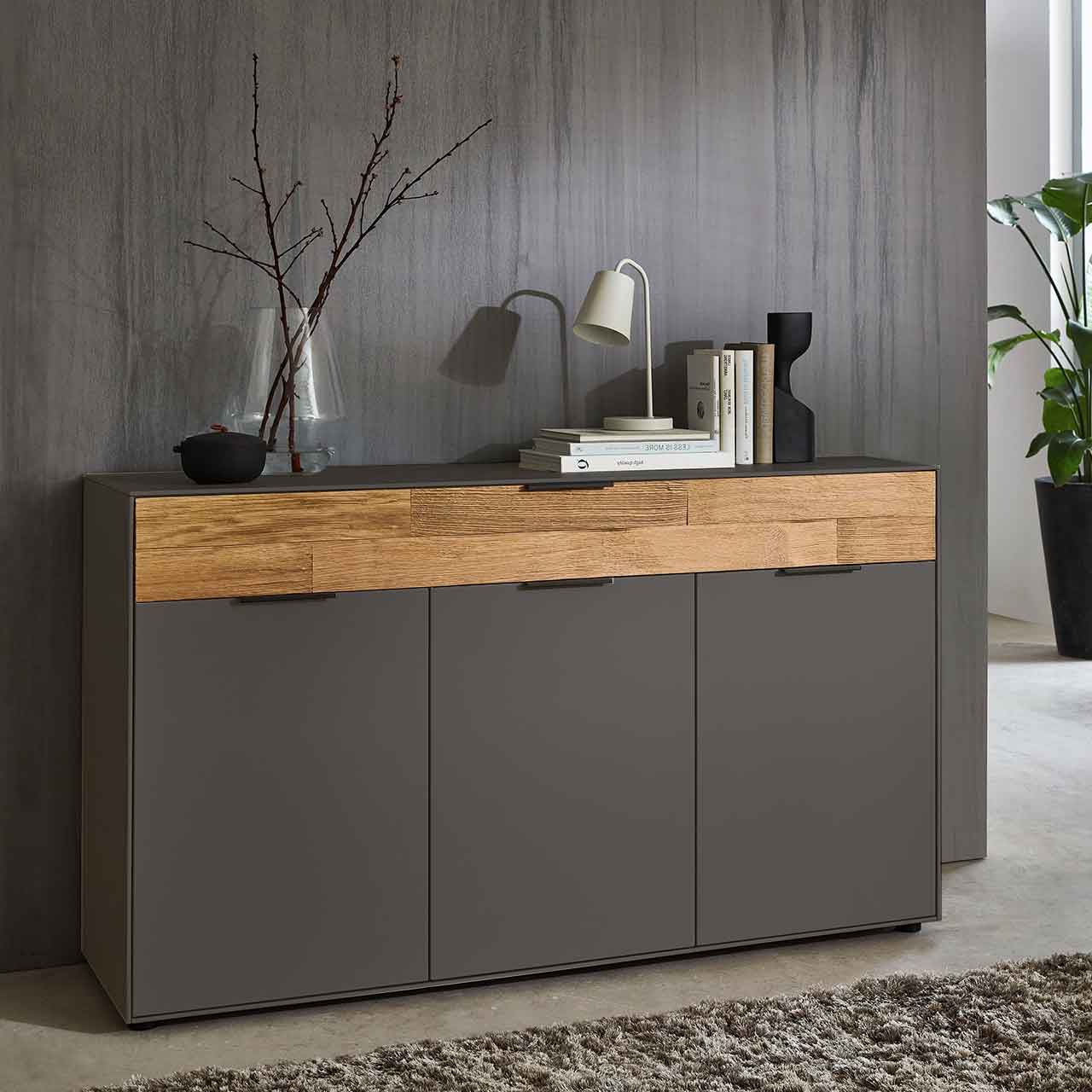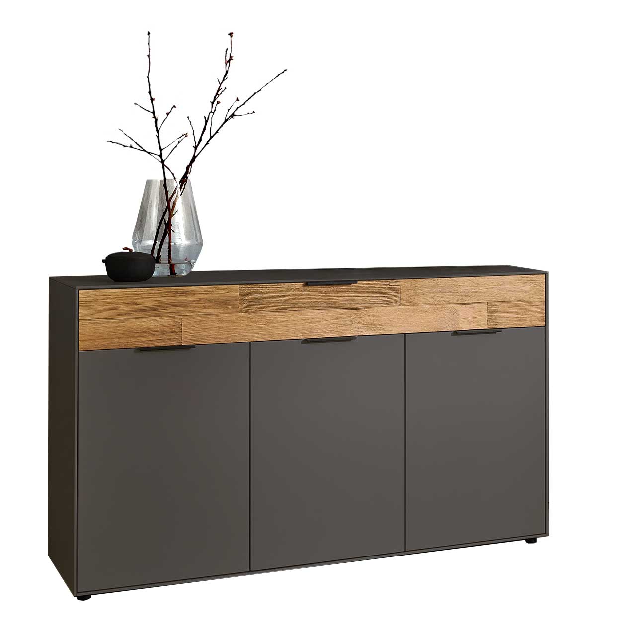 - Korpus außen & Front:Korpus 19 mm dick, ABS Kante, Lack graphitgrau / Lack samtgrau