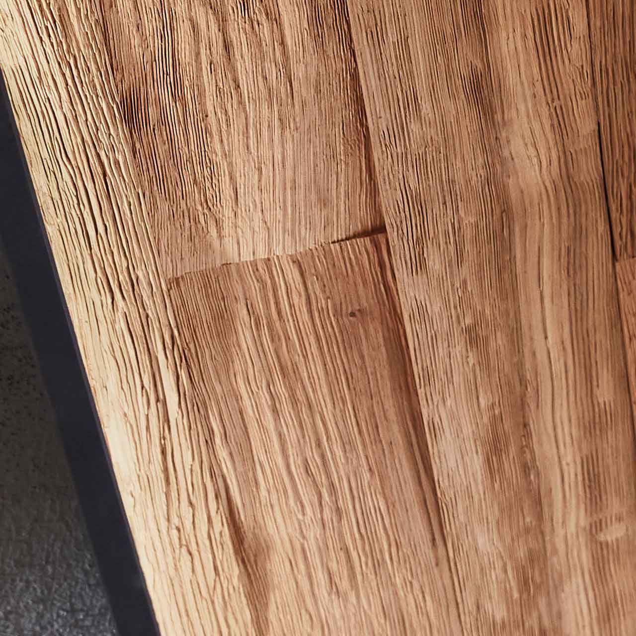 - Front: Spaltholzmassiv, serienmäßiger Akzent senkrechter Verlauf